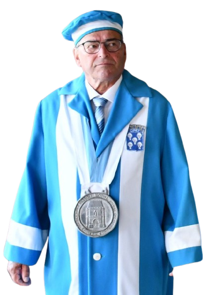 Sa tenue comporte la petite médaille des Compagnons d'honneur et l'épitoge d'INTENDANT.