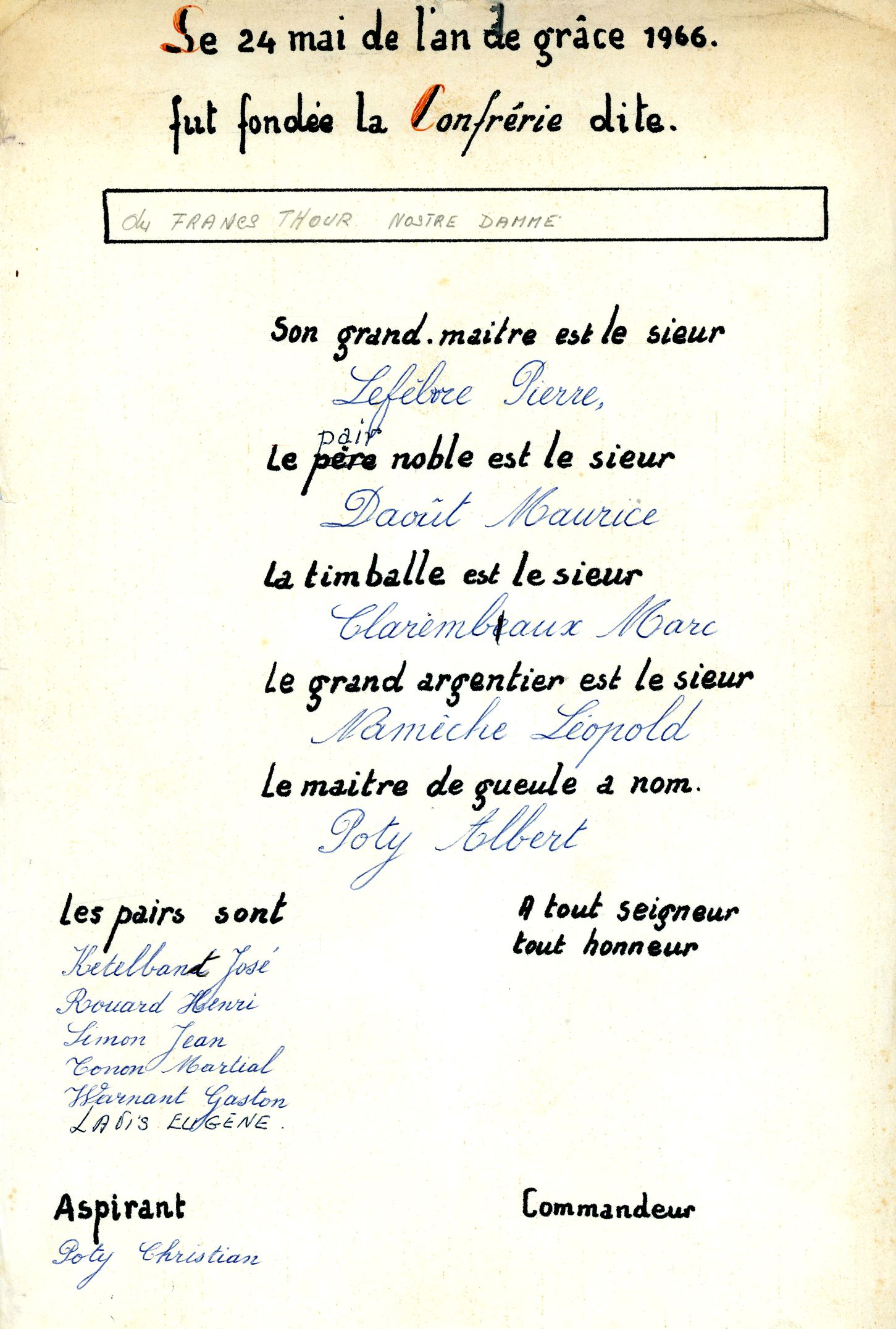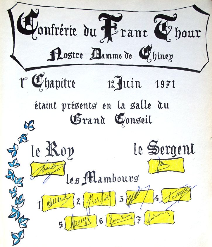 LE ROY ET LES MEMBRES DU FRANC THOUR NOSTRE DAMME DE CHINEY FAISONS SAVOIR :
